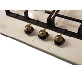 Размеры 46х52х9,8см.Закаленное стекло, белый, чугунная решетка, автоматический розжиг, газ-контроль, 3 газовые конфорки, WOK-конфорка, ширина варочной поверхности 45см, Турция