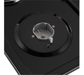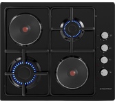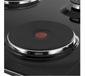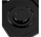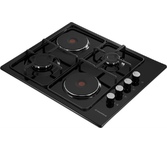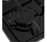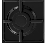 Газ на стекле; 4 конфорки; 60см; одна зона с двойным уровнем пламени; автоподжиг; газ-контроль; чугунные решетки; Расположение панели управления фронтальное; Цвет: Черный