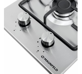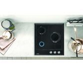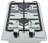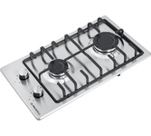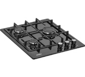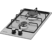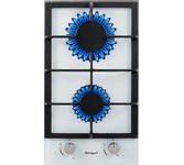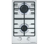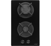 Газовая варочная поверхность, ширина 30 см, 2 газовые конфорки, фронтальные чугунные решетки, цвет - черный.