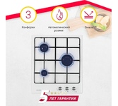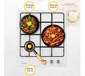 • Независимая газовая варочная поверхность 60 см. • Кол-во конфорок – 4 1 х конфорка повышенной мощности 3000 Вт. 2 х стандартные конфорки 1750 Вт. 1 x экономичная конфорка 1000 Вт. • Автоматический розжиг • Боковая панель управления Комплектация: эмалиро