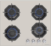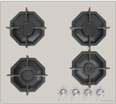 (ШхГ) 59.50х51 см.Газовая варочная поверхность 60 см. Цвет: Овес. Ручки: New Tradis. Газ-контроль. Автоматический электроподжиг. 4 конфорки: двойная корона 4 кВт (Wok), быстрая 2,5 кВт, полубыстрая 1,75 кВт и вспомогательная 1 кВт. 2 эмалированные решетки. Цельноштампованная поверхность. Комплект форсунок для балонного газа. Мощность 9,25 кВт
