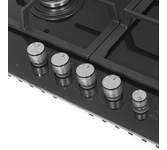 Латунные энергоэффективные конфорки; электроподжиг; ГАЗ-контроль, решетка: чугунная; 2хWOK, WOK-конфорка c разделяемым пламенем; цвет поверхности: матовый черный; цвет ручек: черный+бронза; Ширина (см) 58,4; Глубина (см) 51;