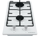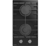 Газовая варочная поверхность, ширина 30 см, 2 газовые конфорки, фронтальные поворотные регуляторы из термостойкого пластика с алюминиевой крышкой, электроподжиг, чугунные решетки, материал поверхности - закаленное стекло, цвет - черный. В комплекте переходники на сжиженый газ.