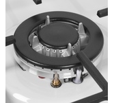 Варочная панель Maunfeld EGHE.43.33CW/G представлена в белом цвете со стальной фурнитурой. Модель из коллекции «Модерн» относится к газовому типу. Материал поверхности металл, покрытый эмалью. Решетки выполнены из чугуна, устойчивого к влиянию высоких температур и механических воздействий. Ниша для встраивания имеет следующие размеры 41×48 см. Три конфорки расположены таким образом, чтобы можно было использовать не только стандартную посуду, но и другую утварь для приготовления пищи. Прибор можно подключить как к магистральному трубопроводу, так и к баллону. Механическое управление осуществляется с помощью поворотных переключателей, которые представлены цельнометаллическими полнотелыми ручками. В комплекте идут жиклеры для баллонного газа. Гарантия от производителя составляет 36 месяцев. Устройство оснащено функцией автоматического электроподжига, который упрощает в разы его запуск и избавляет вас от ненужных трат на приобретение спичек или зажигалок. Для включения конфорки достаточно повернуть рыча