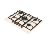 Газовая варочная поверхность (газ на стекле) 4 зоны, Step Flame, одна зона с двойным уровнем пламени, автоподжиг, газ-контроль, чугунные решетки, цвет: белый