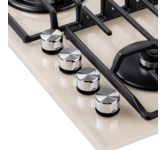 Газовая варочная панель Maunfeld EGHG.64.63CBG/G бежевого цвета. Поверхность из закаленного стекла ударопрочная и легко очищается от загрязнений. Две чугунные решетки с крестообразными соединениями позволяют ставить посуду любого диаметра. WOK конфорка повышенной мощности создает двойное пламя и уменьшает время разогревания или кипячения. Ключевые преимущества: Поверхность из закаленного стекла Чугунные решетки WOK конфорка