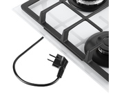 Тип панели: газовая. Установка рабочей поверхности: независимая. Материал поверхности: закаленное стекло. Материал решетки: чугун. Заводская настройка на газ: 20. Суммарная мощность газовых конфорок: 7.9. Минимальная толщина столешницы: 30. Цвет: белый. Конфорка ВОК: есть. Вес (нетто): 9. Газ-контроль: есть. Габариты упаковки (ед) ДхШхВ: 0.645x0.55x0.16. Вес упаковки (ед): 9.5. Страна производства: Китай. Длина сетевого шнура: 0.95. Настроенный вид газа: природный (метан). Общее количество конфорок: 4. Расположение панели управления: спереди/сбоку. Управление: механическое. Электроподжиг: в ручке (автоматический). Гарантия: 24 мес.. Левая ближняя конфорка: газовая, мощность 3.4 кВт, размер 127 мм, трехконтурная. Левая дальняя конфорка: газовая, мощность 1.75 кВт, размер 98 мм, одноконтурная. Размеры (ШхГхВ): 590х510х52 мм. Размеры ниши для встраивания (ШхГхВ): 560х480х30 мм. Правая ближняя конфорка: газовая, мощность 1 кВт, размер 74 мм, одноконтурная. Правая дальняя конфорка: газовая, мощность 1.75 кВт, разм