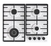 Общие данные: Габариты: 13х60х52 см Габариты ниши для встраивания: 10х56х49 см Рабочий стол: эмаль Конфорки: 4 газовые Мощность конфорок: Передняя левая: ∅ 12,3 см, 3,5 кВт, Передняя правая: малая ∅ 5,37 см, 1,05 кВт, Задняя левая: нормальная ∅ 7,35 см, 1,8 кВт, Задняя правая: нормальная ∅ 7,35 см, 1,8 кВт Автоматический электроподжиг Газ-контроль Управление и функции: Эргономичные переключатели Дополнительная информация: Вид и давление газа: Природный газ G20/20 Чугунные решетки ProGrids Двухконтурная горелка вок
