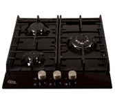 Размеры 46х52х9,7см.Металл, черный, чугунная решетка, автоматический розжиг, газ-контроль, 3 газовые конфорки, WOK-конфорка, ширина варочной поверхности 45см, Турция