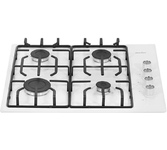 Варочная поверхность газовая. 4 конфорки. Материал поверхности: закаленное стекло. Материал решеток: чугун. Газ-контроль. Электроподжиг. Вид подключения газа: Магистральный/Балонный. Комплект для подключения баллонного газа. Длина шнура питания 1,25 метра.