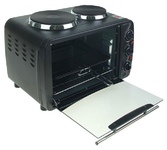35л, 3200Вт, духовка 1600Вт, конфорки 185мм+155мм (1000Вт+600Вт), механ.управление, 3 режима работы духовки (верх, низ, верх+низ), раздельная регулировка температуры духовки и конфорок, комплектация - металлическая решетка, противень и ухват. Цвет: чёрны