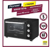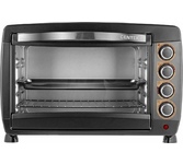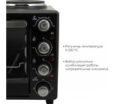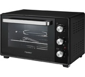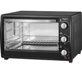 Печь электрическая с конвекцией и электрическим грилем, максимальный объем камеры печи: 32 литра, механическое управление, потребляемая мощность: 1600 Вт, конвекция, гриль электрический гриль, температура нагрева: 100-250°С, 6 режимов нагрева, таймер до 60 минут, индикация включения, сигнал окончания приготовления, внутренняя подсветка, металлическая решетка, плоский противень, круглая форма для пиццы, ухват для противня, вертел для гриля, держатель для вертела , поддон для крошек