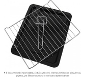 Печь электрическая, объем 32 литра, мощность 1600 ватт, гриль, температура нагрева от 100 до 250 градусов, индикация включения, внутренняя подсветка, сигнал окончания приготовления, 5 режимов нагрева, таймер до 60 минут, металлическая решетка, плоский противень, ухват, круглая форма для пиццы, антипригарный( многоразовый) коврик для выпечки, вертел, ухват для вертела, насадка для приготовления шашлыка/кебаба.