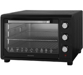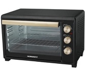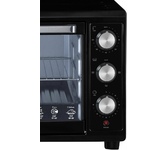 Мини-печь Horizont MO-4502B объемом 45 л выполнена в черном корпусе из металла, что гарантирует долговечность и устойчивость к высоким температурам. Габариты 40х55,3х36 см и вес 8 кг позволяют удобно разместить устройство даже на небольшой кухне. Камера покрыта оцинкованной сталью.Обеспечивает простоту ухода и устойчивость к механическим повреждениям. Механическое управление. Управление печью существляется с помощью трех поворотных переключателей, позволяющих регулировать уровень нагрева от 100°C до 250°C, выбрать режим работы и настроить таймер до 60 минут. Три режима Верхний и нижний нагрев, только верхний или только нижний - дают возможность гибко настраивать процесс приготовления для выпечки или жарки. В комплектацию входят глубокий противень и ручка для извлечения, металлическая решетка и поддон для крошек, упрощающий очистку. Дверца духовки открывается вниз и оснащена однослойным стеклом, встроенная подсветка создает хорошую видимость во время готовки. Термостат поддерживает заданную температуру, звуков