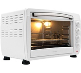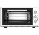 Мини-печь; Объем: 45 л; Мощность: 1500 Вт; Внутренняя подсветка; Цвет: Белый; Тип управления: Механическое; Термостат; Максимальная температура: 230 ˚С; Количество режимов приготовления: 3; Режимы приготовления: Нижний нагрев+Верхний нагрев, Нижний нагрев, Верхний нагрев; Звуковой таймер; Таймер отключения; Индикация включения; Материал корпуса: Металл; Стекло дверцы: Одинарное; Внутреннее покрытие: Оцинкованная сталь; Длина сетевого кабеля: 1.1 м; Комплектация: Решетка, Противень, Круглый противень