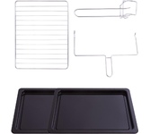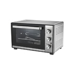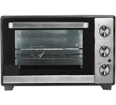 Печь электрическая, объем камеры печи 38 литров, механическое управление, двойное жаропрочное стекло, потребляемая мощность 1600 Вт, температура нагрева печи 100-250 *С, функция конвекции, электромеханический вертел, 6 режимов нагрева, таймер до 60 минут, индикация включения, сигнал окончания приготовления, внутренняя подсветка, металлическая решетка, плоский противень 2 штуки, вертел, держатель для вертела, ухват