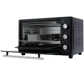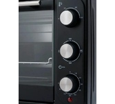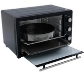 Внутренний объём 25 л, Термостат с диапазоном температур 70-230С, Таймер 60 минут, 3 режима работы (верх, низ, верх+низ), Индикатор работы, Металлическая решетка, противень, Мощность 1400 Вт, Цвет чёрный.