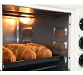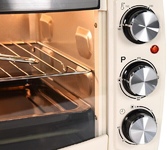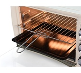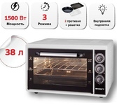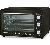 Объем 30л, мощность духовки 1500Вт, механическое управление, 3 режима работы духовки (верх, низ, верх+низ), таймер на 60 минут со звонком, регулировка температуры духовки, комплектация - металлическая решетка, противень и ухват.