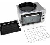 Электрическая печь с грилем, объем: 35 л, потребляемая мощность: 1850 В, механическое управление, гриль, электрический гриль, температура: 100-250°С, таймер отключения: до 60 минут, сигнал окончания приготовления, внутренняя подсветка, 6 режимов нагрева, индикация включения, комплектация: металлическая решетка, плоский противень, насадка для шашлыка/кебаба, ухват для противня, вертел, ухват для вертела