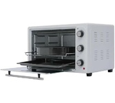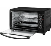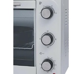 1500 Вт, объем камеры 23 л, серебристый корпус и часть фронтальной поверхности, панель управления черного цвета, декоративные элементы из нержавеющей стали и хрома, таймер на 120 мин + функция "работа без таймера", температура нагрева до 250 C, 3 режима работы (верхний нагрев, нижний нагрев, одновременный верхний и нижний нагрев), Напряжение питания 230 В; Частота 50 Гц, световой индикатор, Механический тип управления, ножки с нескользящей опорой, внутренняя подсветка, современный дизайн, Аксессуары: эмалированный прямоугольный противень, решетка гриль, ухват для снятия противня, поддон для сбора крошек и масла, Размеры без упаковки (см): 46,7x35x29 и Вес нетто без упаковки (кг): 5,8