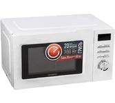 Микроволновая печь, внутренний объем: 20 литров, выходная мощность: 700 Вт, входная мощность: 1100 Вт, мощность гриля: 900 Вт, тип управления: цифровой, электронные часы, диаметр поворотного стола: 245 мм, количество уровней мощности: 10, программы автоматического приготовления: 6, размораживание по весу и времени, таймер: до 99мин.99 сек., блокировка от детей, тип открывания дверцы: ручка, сигнал окончания приготовления