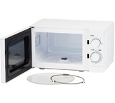 Номинальная выходная мощность микроволн 700 Вт, внутренний объем 20 л, диаметр поворотного стола 245 мм, количество уровней мощности 6, параметры сети: 230В/50Гц, потребляемая мощность 1100 Вт, режим разморозки, сигнал об окончании готовки,таймер (30 минут макс.), управление механическое, цвет корпуса белый, цвет передней панели белый, ручки черно-белые. Особенности: дверца навесная, открывание дверцы-кнопка, подсветка.