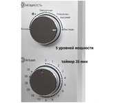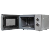 Печь микроволновая, объем 20л, выходная мощность 700 Вт, тип управления: механический, диаметр поворотного стола: 255 мм, количество уровней мощности: 5, автоматическое размораживание, таймер: 35 минут, тип открывания дверцы: ручка, сигнал окончания приготовления, цвет: серебро