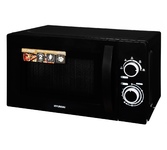 Объем 23 л; Мощность 800 Вт; Механизм открывания дверцы – ручка; Тип управления: механическое; Цвет: черный/хром, ручка - серебро, поворотный стол 270 мм Блокировка от детей