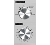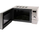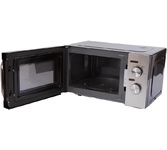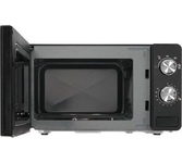 Микроволновая печь, стальной корпус, внутренний объем: 20 литров, выходная мощность печи: 700 Вт, тип управления: механический, диаметр поворотного стола: 255 мм, количество уровней мощности: 5, автоматическое размораживание, таймер: 35 минут, тип открывания дверцы: ручка, сигнал окончания приготовления, полностью белое стекло дверцы, цвет панели: стальной , цвет корпуса: черный