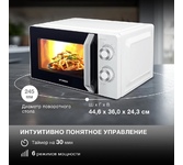 соло, объем 20 л, мощность микроволн 800 Вт, механическое управление, размеры (ШxВxГ): 44x25.9x33.8 cм, цвет корпуса: ,белый