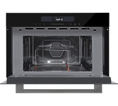 Особенности: Очистка AquaClean Автоматическая очистка без бытовой химии Налейте воду в миску, пригодную для микроволнового приготовления, поставьте в печь и включите программу AquaClean. Пар размягчит загрязнения на стенках камеры. После завершения программы протрите стенки влажной тканью. Автоматические программы Автоматические настройки упрощают приготовление некоторых блюд, например, попкорна, куриных наггетсов, пиццы или макарон. Вы выбираете тип блюда, вводите его вес, и печь автоматически настраивает мощность и продолжительность приготовления. Защитная блокировка Микроволновую печь можно заблокировать для предотвращения случайного включения. Гриль Гриль позволяет добиться особенно румяной корочки на блюдах. Комбинируя гриль с микроволнами, можно ускорить приготовление. По истечении половины времени печь предупреждает звуковым сигналом, что продукты необходимо перевернуть, чтобы они равномерно приготовились и запеклись до золотистой хрустящей корочки. InoxTerior Внутренняя камера микроволновых печей изго