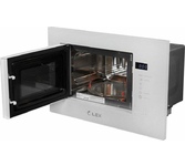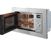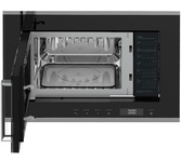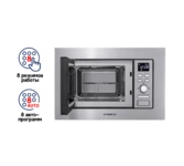 Тип установки: встраиваемый, БЕЗ ПОВОРОТНОГО СТОЛА отделка панели: Закаленное стекло + нержавеющая сталь, Камера для приготовления – нержавеющая сталь управление: сенсорное TOUCH CONTROL РАСПОЛОЖЕНИЕ НА НИЖНЕЙ РАМКЕ, объем: 20 л, мощность микроволн: 700