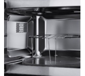 Общие данные: Габариты: 38.2x54.9x31.6 см Объем: 20 л Тип управления: электронный Режимы работы: соло + гриль Мощность микроволн: 1200 Вт Мощность гриля: 1000 Вт Режимы работы: Размораживание по весу Размораживание по времени Автоматические программы: 8 Режимы автоматического разогрева: 2 Управление и функции: Дисплей Тип дисплея: LED Цвет светящихся символов: Белый Звуковой сигнал Индикация времени до конца программы Индикация включения Индикация режима работы Таймер продолжительности работы Опция быстрого старта Защита от детей Элементы управления: Кнопки; Поворотные переключатели Встроенные часы Экранное меню: Не русифицированное; Пиктограммы Дополнительная информация: Вес нетто (кг): 12 Кабель питания: Со штепселем Тип открывания дверцы: Кнопка Напряжение: 220 В Частота: 50 Гц Материал поворотного стола: Стекло Внутреннее покрытие: Нержавеющая сталь Цвет фурнитуры: Черный Комплектация: Решетка для гриля Руководство по эксплуатации