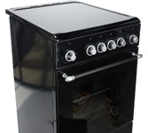 Стеклянный фасад, стеклокерамическая плоскость готовки, типоразмер 50*60см, 2 электроконфорки 1,2кВт, 2 электроконфорки 1,7кВт, индикатор остаточного тепла, электродвигатель, таймер механический, объем электрошкафа - 60л., единовременно потребляемая мощно