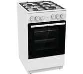 Независимая комбинированная соло плита 50х60 • Цвет: белая эмаль Поверхность: • Поверхность газовая: • Автоматический розжиг от кнопки для газовых конфорок • Газ-контроль • Чугунные решётки • Управление: поворотные переключатели • Металлическая крышка