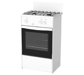 •ШхГхВ: 50x58x85 см * •газовая плита * Цвет белый * •эмалированная рабочая поверхность * •4 конфорки * чугунные решетки * •газовая духовка, 50 л, Газ-контроль духовки * •механическое управление * Ящик для посуды
