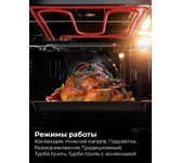 Механические ручки, сенсорное управление, объем 60 л, LED таймер, 7 функций (конвекция, традиционный, нижний нагрев, турбо гриль, турбо гриль с конвекцией, подсветка, размораживание), двойное остекление дверцы, традиционная очистка, в комплекте 1 решетка