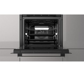 Электрический духовой шкаф; 9 программ; дисплей; утапливаемые поворотные переключатели; панель управления из стекла; плавное закрытие дверцы; система очистки паром; телескопические направляющие на одном уровне; объем - 72л.; 3 стекла дверцы; 1 решетка; 1 противень; 1 глубокий противень; цвет - черный