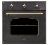 стеклянный фасад цвета черный матовый "BLACK MATT"(кантри), ручки управления - цвет "состаренная латунь", механический таймер с отключением, конвекция, гриль, 6 режимов работы, автомат.охлаждение корпуса, подсветка, объем 58 л. Размер продукта (Выс*шир*гл)- 590*596*600 мм.