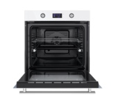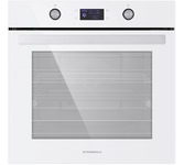 Духовой шкаф с сенсорным управлением VISION LED, панель управления - стекло, LED дисплей белого цвета, 10 режимов, утапливаемые поворотные регуляторы, объем духовки 77 л, двухслойное остекление, каталитическая самоочистка, очистка камеры Steam cleaning, режим быстрого нагрева, функция "Гратен", автоматическое отключение, одноуровневые телескопические направляющие, эмаль легкой очистки, в комплекте: глубокий противень и хромированная решетка, цвет: белое стекло