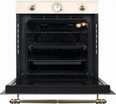 Духовой шкаф Maunfeld EOEH.5811B — это компактная и стильная встраиваемая модель в черно-серебристой цветовой гамме. Большой объем рабочей камеры — 59 л. Можно готовить несколько блюд в одно и то же время. Ширина и высота модели — 59,5 см, глубина — 53,35 см. Для встраивания понадобится ниша с габаритами 60×54,6×56 см. Гарнитур не пострадает от жара и горячего воздуха, так как прибор оснащен тангенциальным охлаждением. Встроенный вентилятор выводит нагретый воздух без вреда для окружения. Есть опция автоматического отключения. Дверца из двойного стекла, так что о нее невозможно обжечься. Освещение с помощью светодиодной лампочки поможет определить степень готовности блюда и отмыть стенки камеры. При этом дверцу можно снять. Духовой шкаф Маунфилд EOEH.5811B оснащен двумя телескопическими направляющими на двух уровнях. В комплекте вы найдете стандартный противень, решетку и прихват. Всего уровней для установки противней — пять. Одиннадцать режимов позволят подобрать оптимальные настройки для любого бл