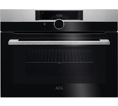 Компактный духовой шкаф с функцией СВЧ, высота прибора 45 см, электронное сенсорное управление Full TouchControl, LЕD дисплей белого цвета Cold White, 10 режимов нагрева духовки, 4 режима СВЧ, включая 3 кобинированных режима; автопрограммы, электронный таймер отключения и отложенного старта, дверца духового шкафа с тройным остеклением, система автоматического охлаждения, автоматическое отключение, эмаль легкой очистки, Аксессуары: противень для выпечки с внутренней решеткой, хромированная решетка, стеклянный противень, цвет: белое стекло + серебристо-хромированная ручка