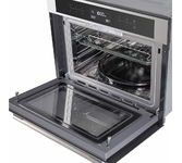 Тип духовки: электрическая. Тип управления: независимое. Переключатели: сенсорные. Мощность подключения: 3350. Объем духовки: 44. Максимальная температура: 230. Класс энергоэффективности: A. Очистка духовки: Гидролизная. Материал внутреннего покрытия духовки: эмаль легкой очистки. Вид таймера: электронный. Тип гриля: электрический. Мощность СВЧ: 1650. Количество стекол в дверце: 2. Освещение духовки: есть. Многофункциональная духовка: да. Количество программ духовки: 13. Открывание дверцы: вниз. Вес (нетто): 43.85. Габариты упаковки (ед) ДхШхВ: 0.7x0.66x0.55. Вес упаковки (ед): 36.6. Страна производства: Китай. Подключение к электросети: кабель с вилкой. Гарантия: 36 мес.. Размеры ниши для встраивания (ШхГхВ): 56 x 55 x 45 см. Размеры (ШхГхВ): 59.5 х 54.8 х 45.4 см. Цвет: нержавеющая сталь. Особенности конструкции: вентилятор охлаждения, дисплей, полностью стеклянная внутренняя поверхность дверцы духовки. Защита: защитное отключение, от детей. Режимы работы: СВЧ, гриль, конвекция, размораживание. Индикация: в