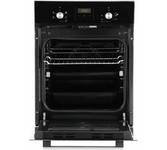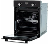 Эл. независимый духовой шкаф, 6 режимов, режимы духовки: Нижний нагрев, Нижний + верхний нагрев, Конвекция., механический таймер, Материал внутреннего покрытия духовки эмаль легкой очистки, поворотные переключатели, мощность подключения 2300 Вт, объем духовки 68 л, Полностью стеклянная внутренняя поверхность дверцы духовки, класс энергопотребления А, Цвет – черное стекло