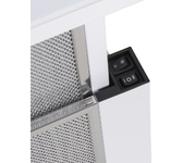 Вытяжка встраиваемая в шкаф. Цвет белый. Габариты В/Ш/Г 19,7/59,8/29 см. Режимы работы отвод, рециркуляция. Управление электронное. Тип переключателей электронное. Тип переключателей кнопки. Количество скоростей 3. Тип мотора стандартный. Тип освещения светодиодное. Производительность, 850куб м/час. Максимальная площадь кухни, 15кв. м. Класс энергопотребления В. Потребляемая мощность, 127Вт. Уровень шума, 44дБ. Диаметр отверстия воздуховода, 150мм. Вес 4,8кг.