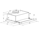 встраиваемая в шкаф, ширина встраивания: 50 см, режимы работы: отвод / циркуляция, производительность: 400 куб.м/ч, количество двигателей: 1
