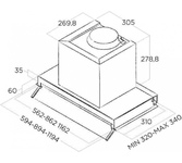 Режимы работы: отвод/циркуляция. Управление: сенсорное. Количество двигателей: одномоторная. Количество регулировок мощности: 5. Диаметр штуцера для отвода воздуха: 120 мм. Максимальная производительность: 1600. Уровень шума: 42. Тип подсветки: светодиодное. Тип фильтра: металлический жироулавливающий. Вес (нетто): 8.9. Рециркуляция: 850. Угольный фильтр: отсутствует. Размеры: 60x34.1x30см. Габариты упаковки (ед) ДхШхВ: 0.62x0.385x0.335. Вес упаковки (ед): 10.2. Страна производства: Турция. Гарантия: 24 мес.. Мощность подсветки: 2 х 2 Вт. Время таймера: до 15 минут. Размеры секции для встраивания (ШхВхГ): 56.3 х 25.6 х 30 мм. Цвет: черный. Конструктивные особенности вытяжки: антивозвратный клапан, встроенная подсветка. Управление вытяжкой: автовыключение, пульт ДУ, регулятор мощности, таймер. Дополнительные режимы вытяжки: интенсивный. Уровень шума: 42 дБ. Режимы работы: отвод/циркуляция. Производительность: максимальная производительность 1600 м3/час; рециркуляции 850 м3/час. Количество двигателей: одномотор