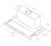 Режимы работы: отвод/циркуляция. Регулировка уровня мощности: есть. Управление: кнопочное. Количество двигателей: одномоторная. Количество регулировок мощности: 3. Диаметр штуцера для отвода воздуха: 150 мм. Максимальная производительность: 1200. Уровень шума: 43. Встроенная подсветка: есть. Тип подсветки: светодиодное. Тип фильтра: алюминиевый жироулавливающий. Мощность подключения: 206. Индикатор загрязнения фильтра: есть. Антивозвратный клапан: есть. Интенсивный режим: есть. Таймер: есть. Вес (нетто): 10.9. Угольный фильтр: отсутствует. Размеры: 59.7x39.6x28.15см. Габариты упаковки (ед) ДхШхВ: 0.68x0.39x0.51. Вес упаковки (ед): 12.5. Гарантия: 12 мес.. Мощность подсветки: 2 х 3 Вт. Размеры секции для встраивания (ШхВхГ): 55.2 х 28.15 мм. Цвет: серебристый. Управление: кнопочное; регулировок мощности 3. Режимы работы: отвод/циркуляция. Уровень шума: 43 дБ. Количество двигателей: одномоторная. Производительность: максимальная производительность 1200 м3/час. Освещение: светодиодное