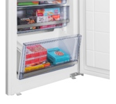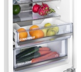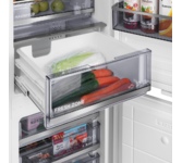 Встраиваемый комбинированный холодильник-морозильник с EasyFresh и NoFrost Особенности: NoFrost Открывая морозильное отделение, вы хотите видеть замороженные продукты, а никак не лёд или иней. NoFrost защищает морозильную камеру от нежелательного обледенения, расходующего много энергии и порой стоящего достаточно дорого. NoFrost означает: никакого больше утомительного и продолжительного размораживания морозильного отделения, больше времени для других дел - и экономия денег. EasyFresh Наш контейнер EasyFresh гарантирует свежесть продуктов в вашем доме, как на рынке. Неупакованные фрукты, овощи или плоды: здесь всё хранится оптимально. Благодаря плотному закрытию контейнера под воздействием продуктов в нём повышается влажность воздуха. Таким образом, продукты остаются свежими долгое время. DuoCooling Благодаря двум полностью раздельным контурам охлаждения DuoCooling обеспечивает отсутствие воздухообмена между холодильным и морозильным отделениями. Продукты питания не засыхают,а запах не передаётся. А это значит