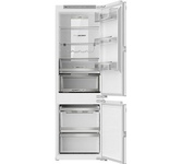 Встраиваемый двухкамерный холодильник с нижним расположением морозильной камеры Общие данные: Размеры: высота: 177.2 см ширина: 55.8 см глубина: 54.5 см Общий объем/ Полезный объем: Холодильника: 261/- л Холодильной камеры: 185/- л Морозильной камеры: 76/- л Электронное управление Класс энергопотребления: A+ Климатический класс: SN-T (от +10°С до +43°С) Количество компрессоров: 1 Годовое потребление энергии: 275 кВтч/год Цвет: белый Холодильное отделение: 3 полки 3 полки на дверце Полка для бутылок Multi Air Flow Система Nо Frost (Frost Free, Ноу Фрост) Освещение LED Ящики для овощей с регулировкой влажности Ящики для овощей: 2 шт. Морозильное отделение: Система Nо Frost (Frost Free, Ноу Фрост) Мощность замораживания: 8 кг/сутки Время поддержания температуры при отключении электроэнергии: 15 ч Суперзамораживание 3 ящика Дополнительная информация: Инверторный компрессор Сенсорный дисплей Wi-Fi управление Функция Отпуск Сигнал открытой двери Уровень шума дБ (А): 35 Тип хладагента: R600a Напряжение/Частота: 220-